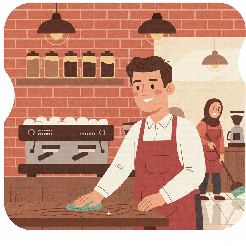 Warung kopi sederhana bisa terlihat nyaman kalau tempatnya bersih. Dan sebaliknya, tempat ngopi mewah bisa kehilangan kualitasnya kalau tempatnya kotor tidak bersih. Meja yang lengket, gelas kusam, atau tempat sampah penuh dan terbuka bisa membuat pelanggan malas untuk duduk lama atau kembali lagi. Kesan pertama orang ketika datang ke suatu tempat cenderung melihat dari kebersihan nya dulu, bukan langsung dari harga.